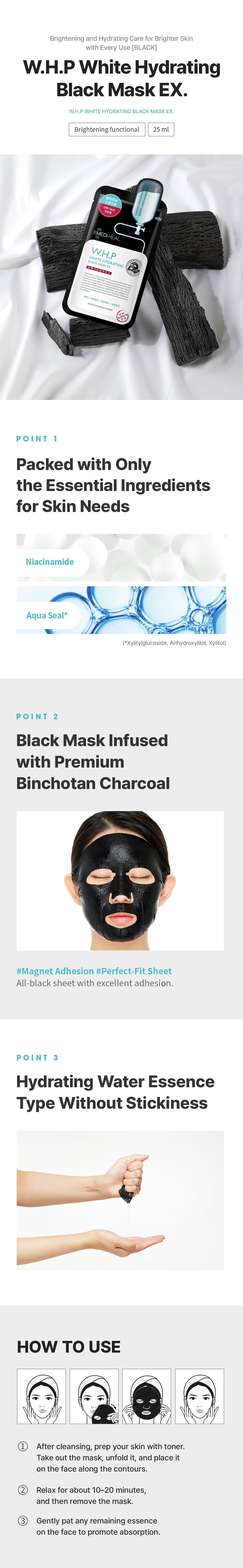 MEDIHEAL W. H.P White Hydrating Black Mask Sheet EX.